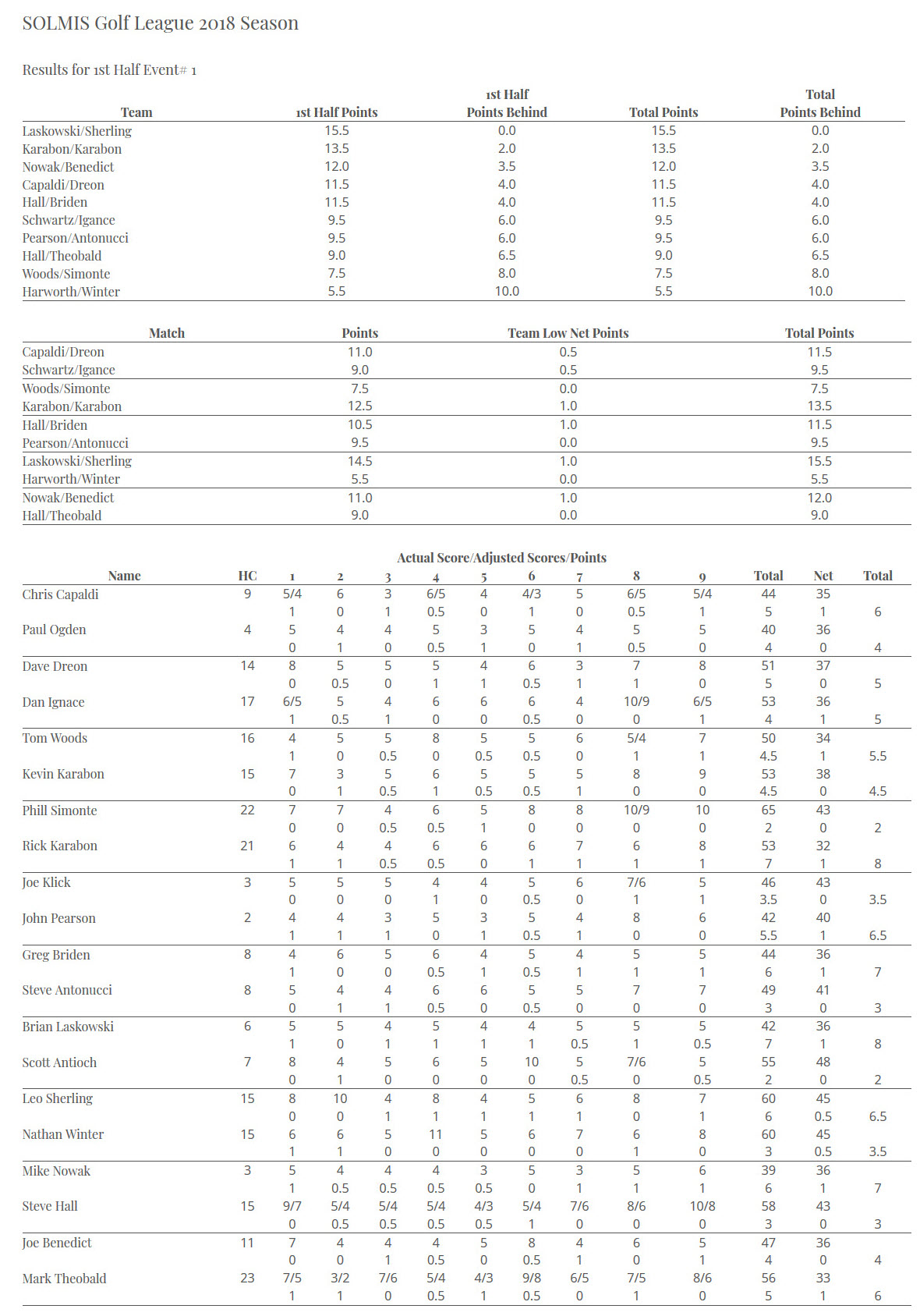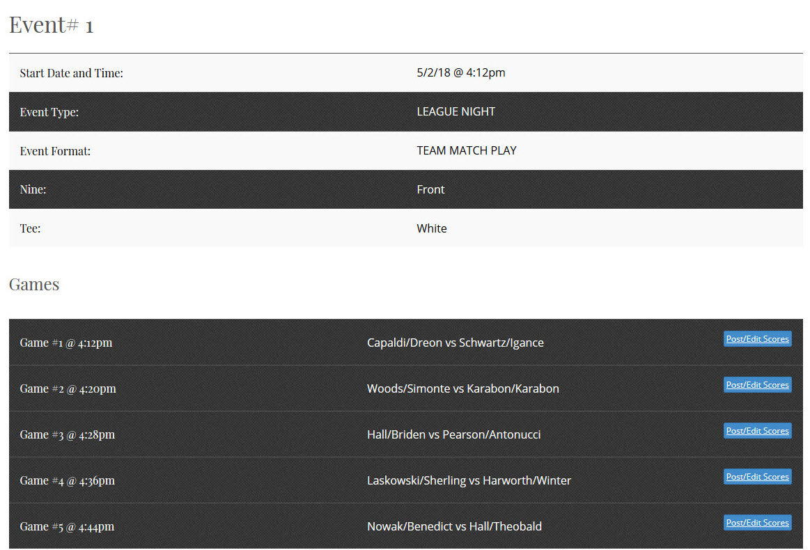 - Accomodates both weekly team play as well as special league match events, e.g., scrambles, shambles, etc.